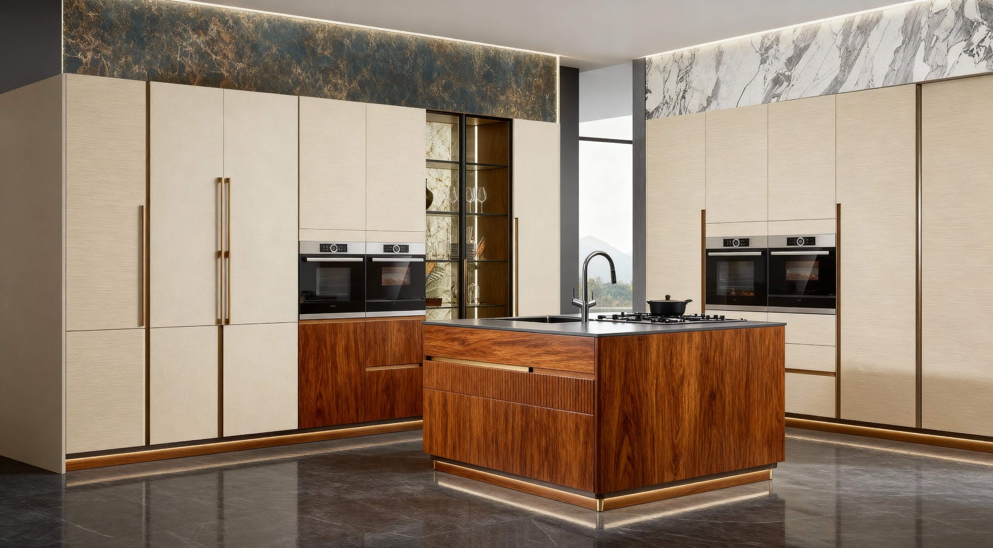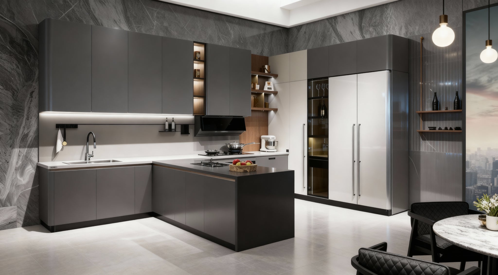 Widely chosen for modern kitchen cabinet, PET doors are made from a durable, odourless, and eco-friendly material with a smooth glossy or matte finish. They offer a sleek, contemporary look that is resistant to water, scratches, pressure, corrosion, ageing, and extreme temperatures. Their resistance to gas, water, oil, and fingerprints makes them easy to clean and ensures long-term use with no discolouration.